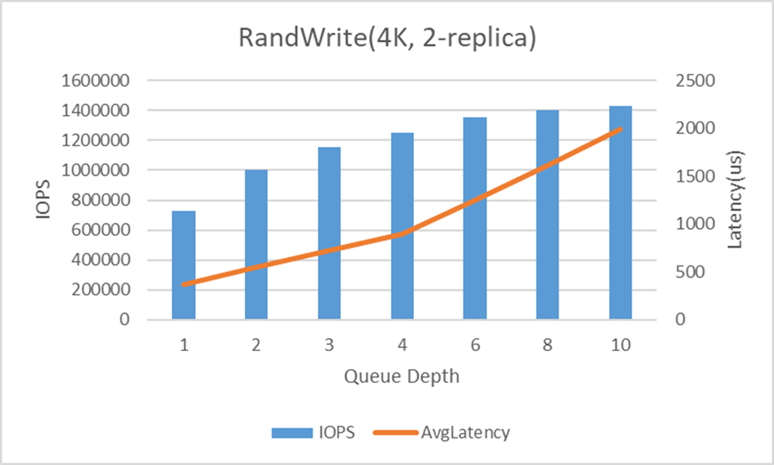 图3:4KB数据块,2副本,100%随机写性能测试结果