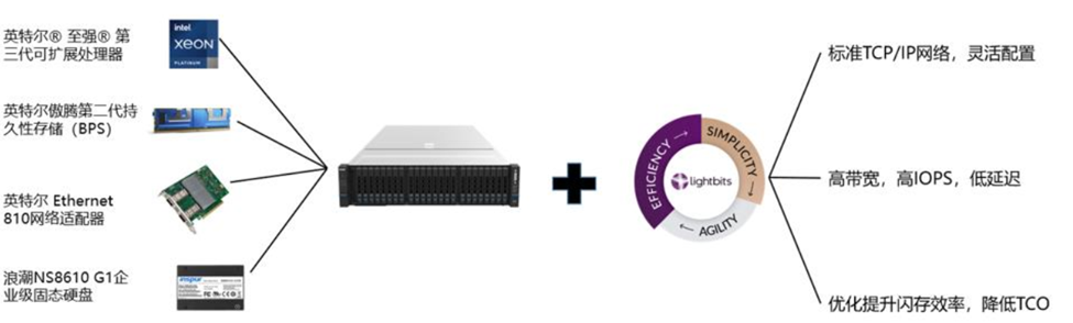 图1展示了9001cc 以诚为本 9001cc-Lightbits软硬件一体化全闪存存储解决方案。本方案具有如下优势:
