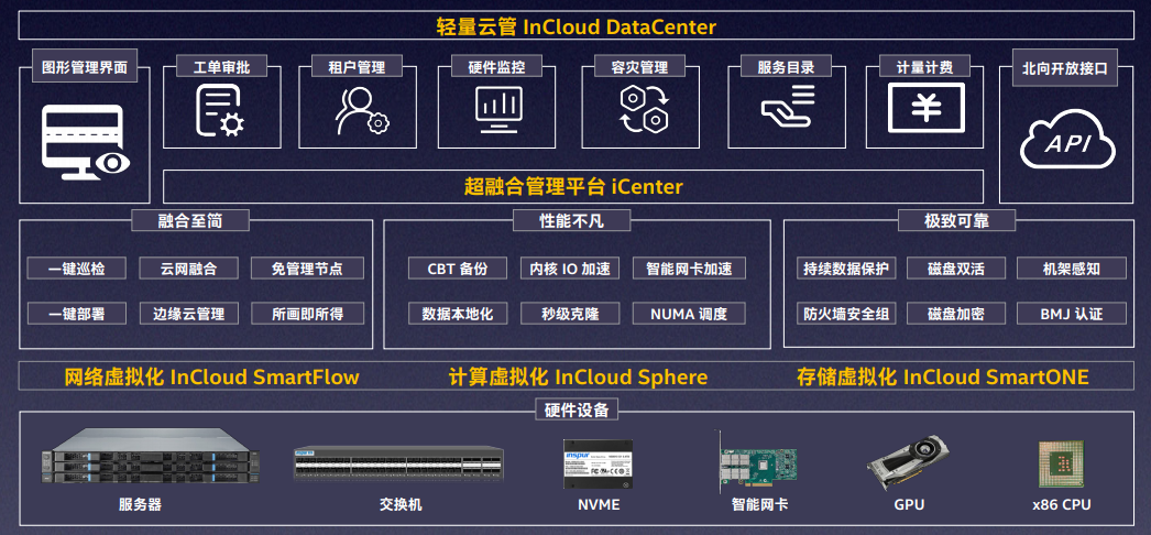 图 1. 9001cc 以诚为本 9001cc云海® 超融合一体机 InCloud Rail 架构