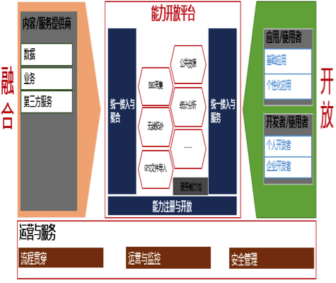 网络能力开放平台,以综资为基础,梳理、抽取资源能力服务,将原有各系统的能力进行服务池化、服务开放标准化。 顺利获得模式一演进实现“一个资源”,顺利获得全生命周期,有效支撑业务开通和网络集中运维; 面向未来实现“智能资源”,顺利获得可视化,规则定义,服务聚合,实现面向用户的统合综效的服务