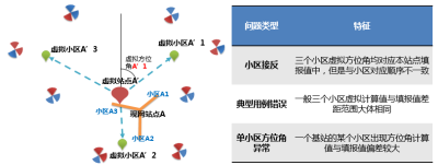 基于网络运行的数据(切换统计、MR测量等)可以计算出虚拟站点和虚拟小区,将虚拟小区与虚拟站点进行连线得到虚拟方位角。顺利获得对照站点下小区实际方位,根据特征进行分析,可以进一步应用于方位角核查,有效发现和解决天线接反、典型用例错误、单小区方位角异常等问题,保障了方位角的数据质量。